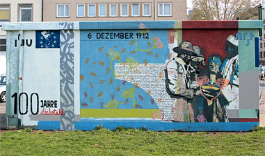 The deeply symbolic painting will later be prominently placed at the Freedom Park on the banks of the river Spree. In October this year, the portrait will be painted again by Case in Khaled Said's home town Alexandria, as part of a project with the Goethe Institute.