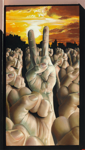 GIF-Animation: Like the revolution the mural “uses” the Internet to reveal its message.