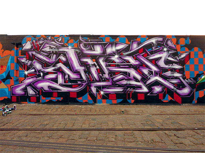 Danish graffiti maestro Sabe is a true master of styles. Adept on many levels, he is able to switch between advanced mechanical compositions, new-wave bubble styles, throw-ups, characters and photo-realism with ease. With a ‘paint now, think later’ attitude he mixes up these styles to suit the occasion, leaving a legacy of playful hybrids that sit left of mainstream. Never one to be called a slacker, he has an execution rate that leaves most gasping for air. Sabe remains active, prolific and influential even after more than twenty five years on the run.