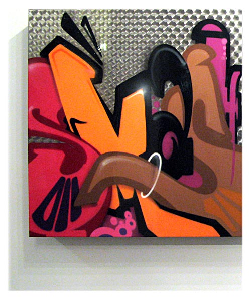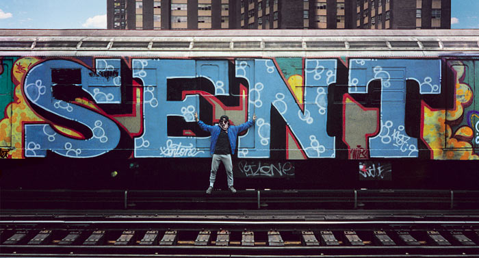 Since 1983, Sento has been an active graffiti artist painting every surface that holds still long enough to get a fresh coat of Krylon paint. The self-proclaimed ‘king of swing’ was intent on taking what he had learned from the pioneers of the subway movement to a whole other level, playing with graffiti convention to create something new and unique. His repertoire included block letters, script styles, simple styles and tough cartoon imagery, inspired by Bode. By the late 80’s his work had become stylistically more complex, with abstract wild-styles and by the nineties he was attaching all kinds of crazy stuff to his pieces, like telephones. He is the Vice-President of the legendary Fantastic Partners crew, a true all-city subway writer who took his talent beyond his neighborhood and hit up places across the world. When New York was feeling the effects of the MTA’s Buff policy and subway graffiti was dying out, only hardcore writers like Sento continued.